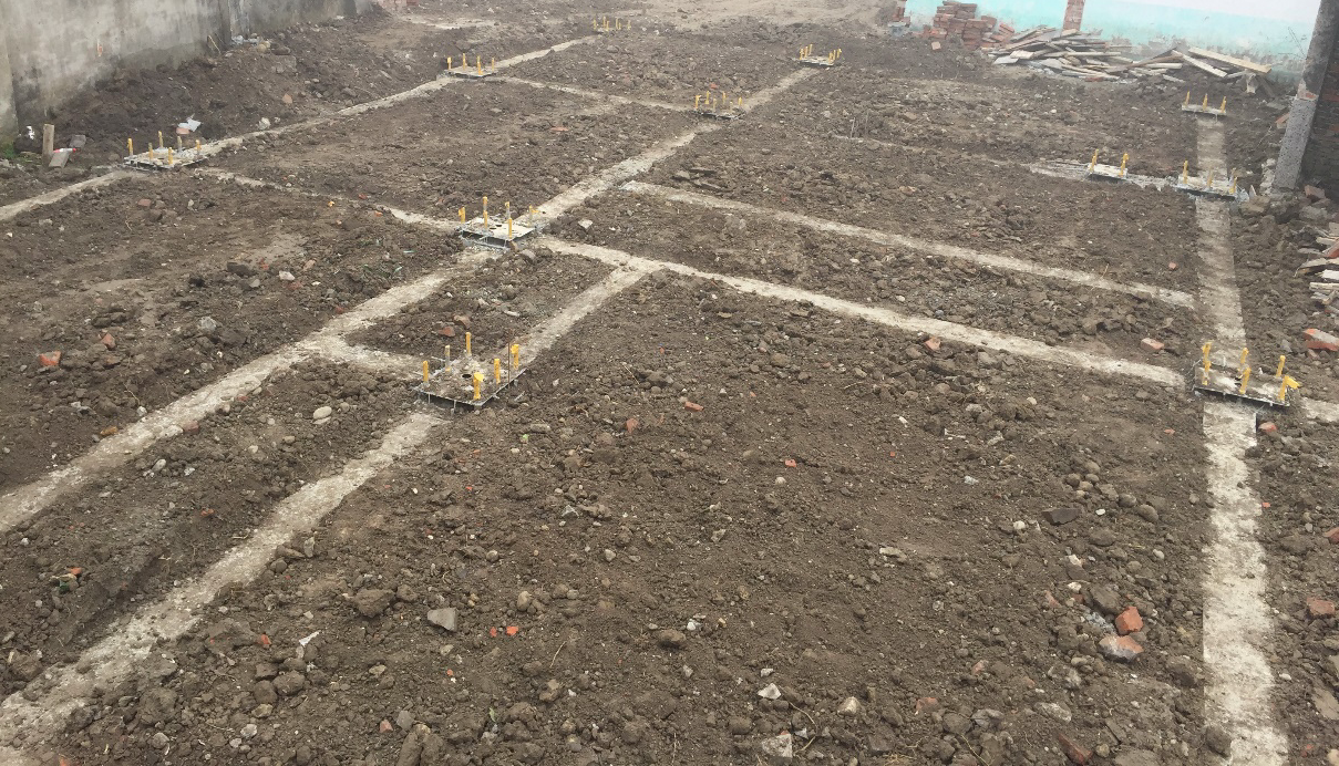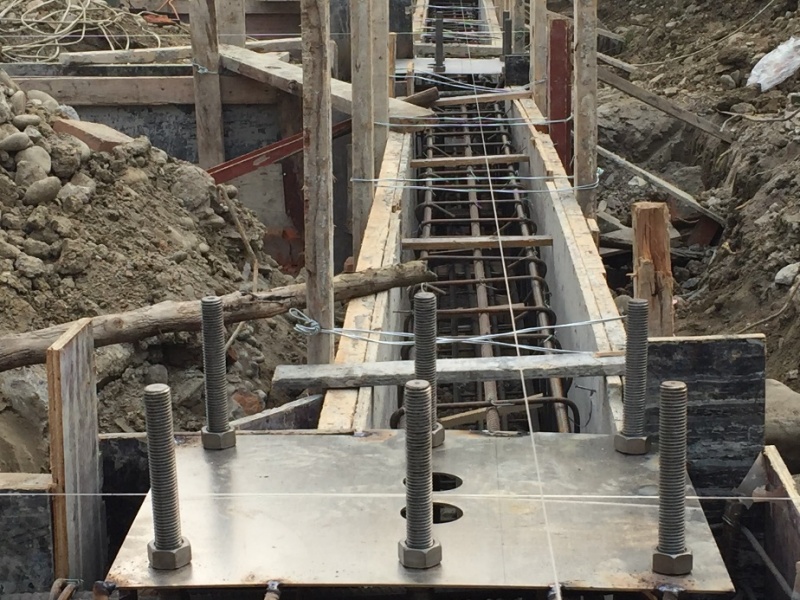 階段描述:安裝預(yù)埋件、地梁澆筑、土方回填、平整地基
