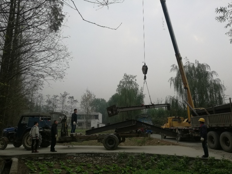 運輸鋼構(gòu)件的大卡車,剛好能進村