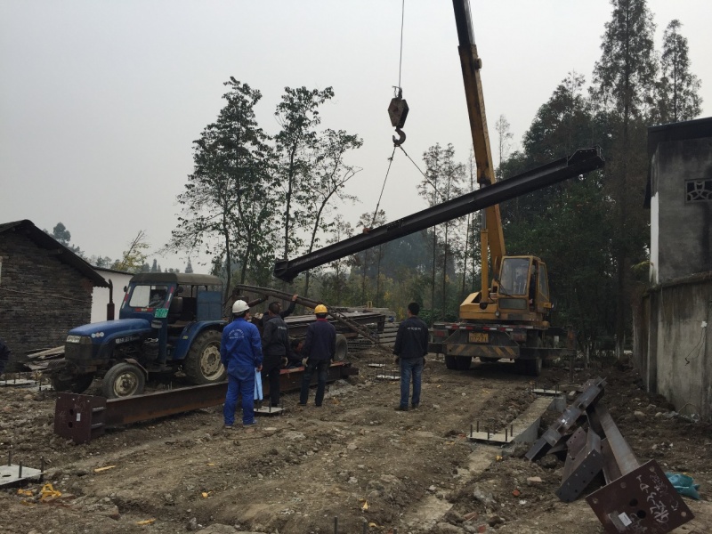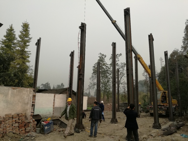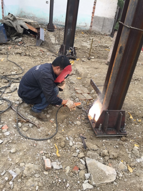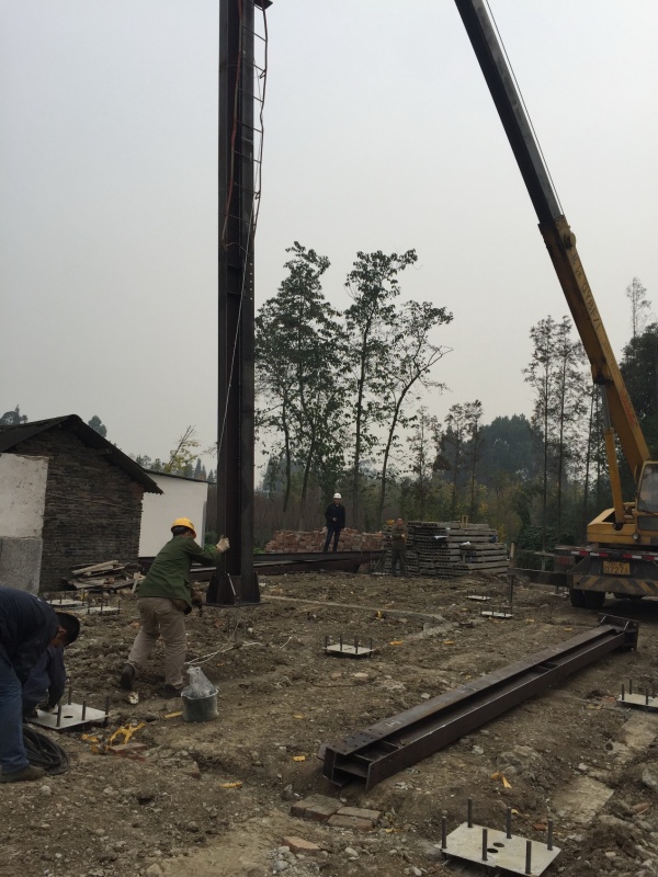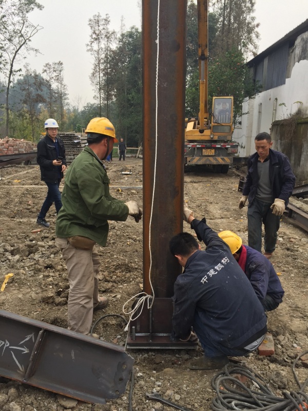 階段描述:民居房的鋼柱一共16根,每根均為由抗震、耐候、耐火的390NH耐候H鋼和鋼板焊接組成的格構(gòu),由于前期預(yù)埋件地腳螺栓的位置經(jīng)過(guò)反復(fù)校核,保證了預(yù)埋件位置正確,因此鋼柱安裝快速、高效、準(zhǔn)確,整個(gè)過(guò)程僅歷時(shí)4小時(shí)。