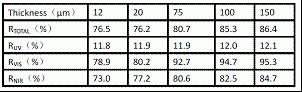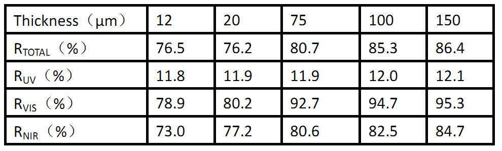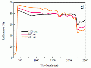 (b)不同厚度的樣品對太陽光的反射率