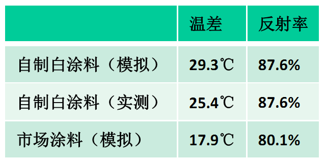 ? 制成的涂料熱反射率高達87%,隔熱溫差29.5℃,有優(yōu)異的熱反射性能。