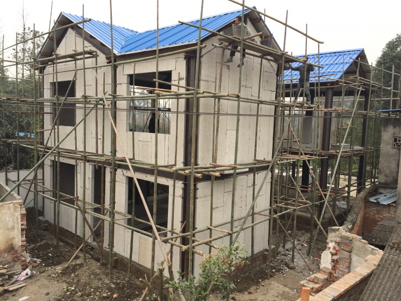 外墻板安裝在工序上應(yīng)和屋面工程配合,及時(shí)跟進(jìn)。屋面保溫板安裝就位后,外墻板就已具備工作面,材料調(diào)配應(yīng)提前準(zhǔn)備運(yùn)至施工現(xiàn)場。外墻板采用的是可裝配式的復(fù)合外墻板,它的優(yōu)點(diǎn)是保溫隔熱、隔音、防火、防潮,單塊面積大,施工快,質(zhì)量輕,一個(gè)工人即可背起短距離運(yùn)輸,操作時(shí)可兩人進(jìn)行。該外墻板與“內(nèi)龍骨雙側(cè)保溫板隔墻”相比另一大優(yōu)勢是可直接訂掛,單點(diǎn)吊掛可達(dá)100公斤,竣工后用戶可在任意點(diǎn)訂掛,如吊掛空調(diào)、熱水器等器件。施工作業(yè)的難點(diǎn)是鋼柱封閉:因主體結(jié)構(gòu)為H型鋼,裝飾前必須外包鋼柱。為防止鋼柱裝飾封閉后四角出現(xiàn)出現(xiàn)裂縫,封閉鋼柱的材料同樣采用了與外墻板相同的材料,厚度材料60mm的復(fù)合墻板,這樣封閉后使柱子四周形成了封閉的墻體,刮膩?zhàn)訒r(shí)再采用掛網(wǎng)防裂處理,可有效的防止柱角的裂縫。